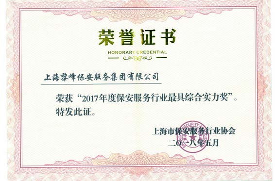 2017年 被上海市公安局評為2016年度保安服務(wù)行業(yè)業(yè)務(wù)發(fā)展優(yōu)勝獎